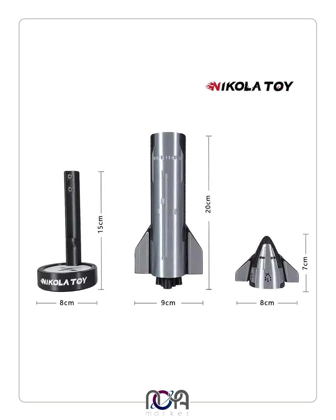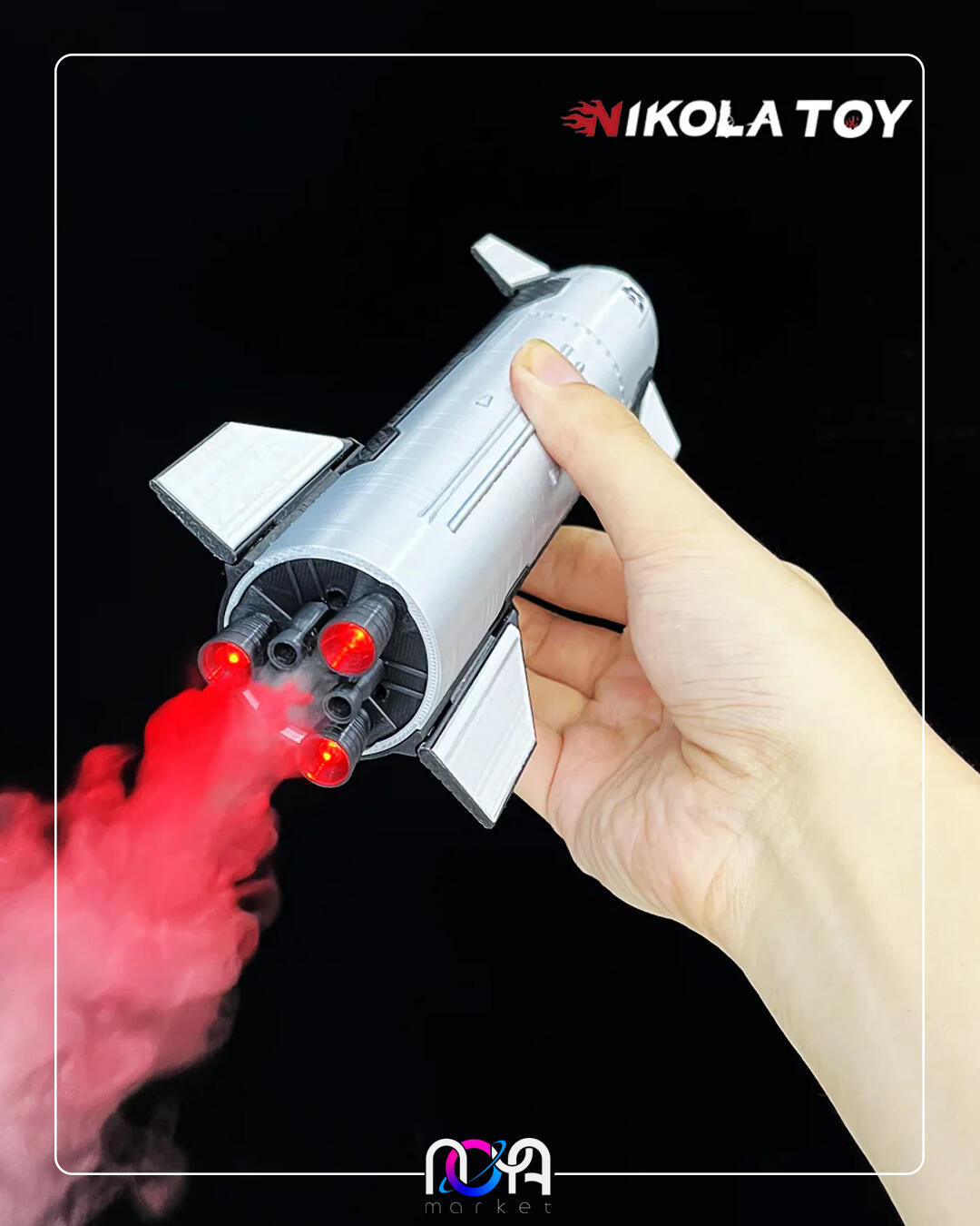 موشک دارای یک خروجی بخار با سه نور قرمز رنگه و از طریق مگنت روی بدنه، به پایه متصل میشه. این محصول شارژیه و از طریق سرنگ مخصوص مخزنش پر میشه.