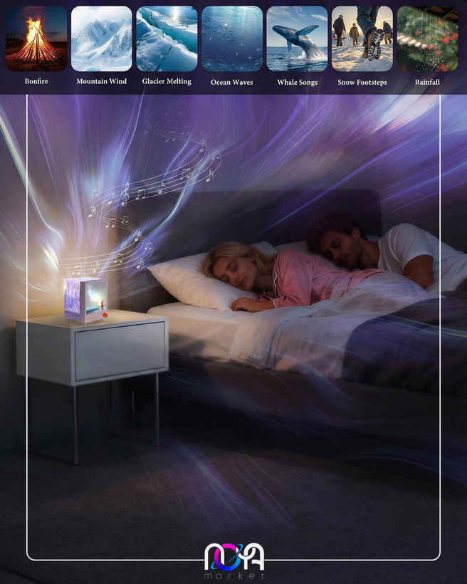 این محصول مجهز به اسپیکر بلوتوثی با توان 5 وات و همچنین 7 صدای آرامش بخش مثل صدای آب، باران و ... هست. شفق باکس کاملا شارژیه و دارای کلیدهای لمسیه.
